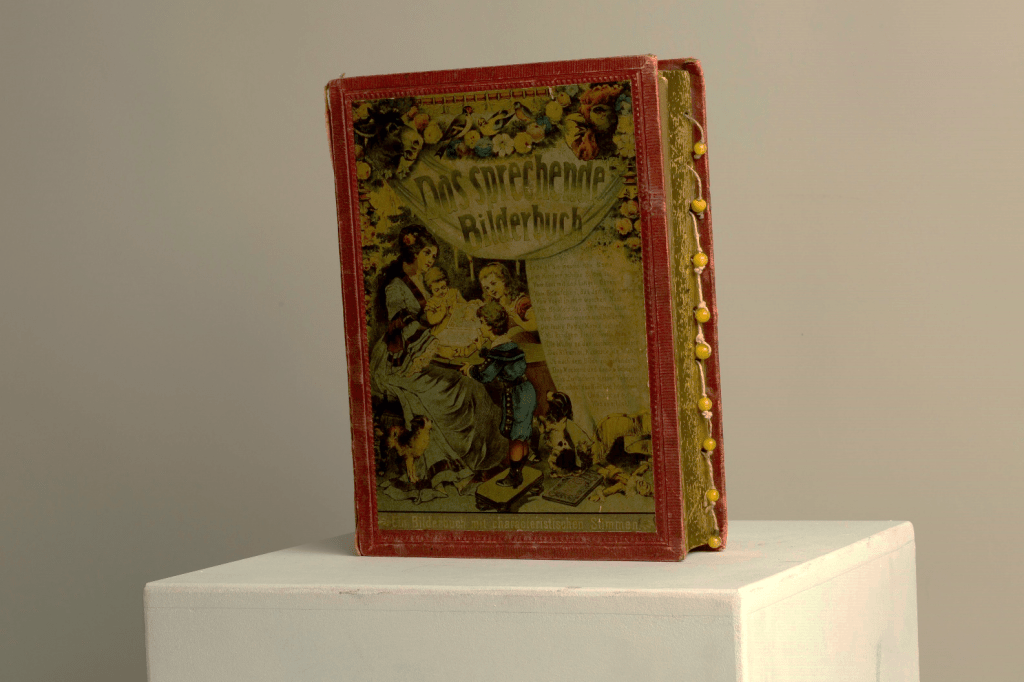 Ein sehr besonderes Kindermedium in der Sammlung der Kindermedienwelten ist das „sprechende Bilderbuch“. Es ermöglichte eine Kombination aus Buch und Ton und wurde im Jahr 1878 vom deutschen Buchhändler Theodor Brand zum Patent angemeldet.